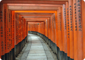 This Shinto Shrine, established in the 8th century, is famous for the long tunnels of vermilion torii gates straddling a network of trails leading to the top of the heavily forested Mt. Inari. Fushimi Inari is the most important of several thousands of shrines dedicated to Inari, the Shinto God of rice. Foxes are thought to be Inari’s messengers, resulting in many fox statues across the shrine grounds. Fushimi Inari Shrine has ancient origins, predating the capital’s move to Kyoto in 794.