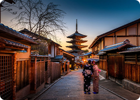 Steeped in history and tradition, Kyoto has in many ways been the cradle of Japanese culture. A stroll through Kyoto today is a walk through 11 centuries of Japanese history. Kyoto is endowed with an almost overwhelming legacy of ancient Buddhist temples, majestic palaces, and gardens of every size and description. For many, just the name of Kyoto conjures up the classic images of Japan: streets of traditional wooden houses, the click-clack of geta (wooden sandals) on the paving stones, geisha in a flourish of brightly colored silks, and a tea master deliberately warming water and making tea.