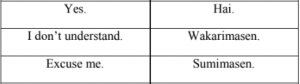 The Japanese appreciate our efforts to communicate in their language even if our pronunciation is not entirely correct. When you are on your own you will feel at ease being able to say excuse me, ask for water or the check.